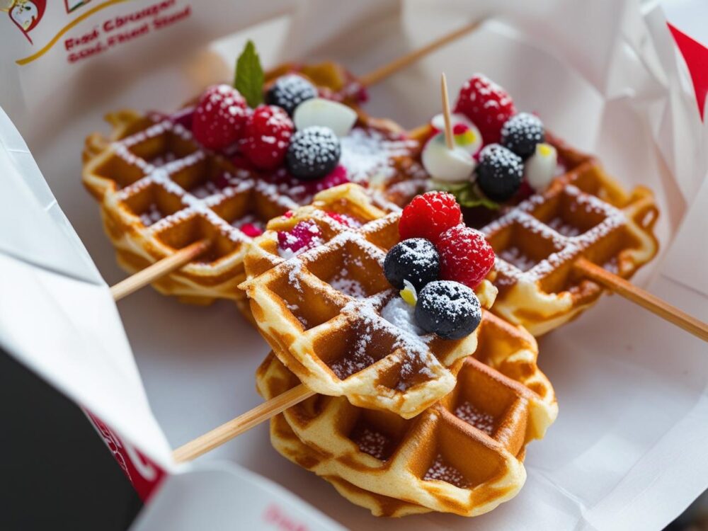 クロッフルは、クロワッサン生地をワッフルメーカーで焼いたスイーツです。韓国で人気に火が付き、2021年頃から日本でも見かけるようになりました。チョコソース、フルーツ、アイスクリームなどをトッピングして楽しめ、見た目も華やかでSNS映えもします。屋台で販売されているのは棒にささっているので、食べ歩きにもぴったり。