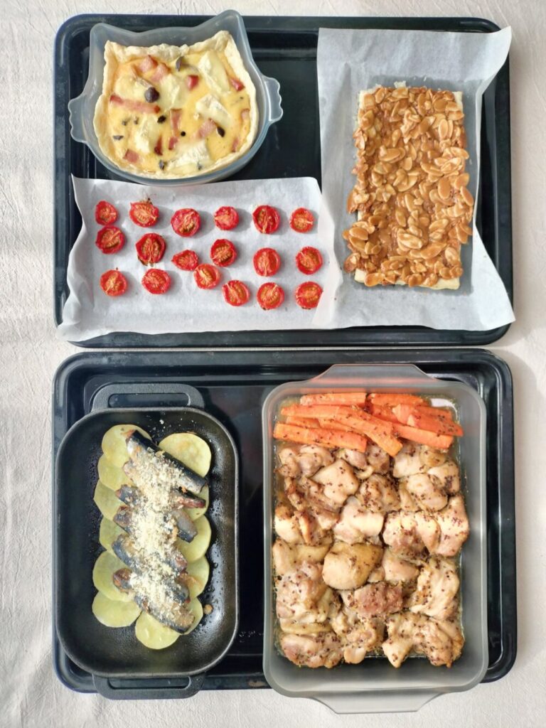 オーブン同時調理なら、温度をそろえて一気に焼くだけで主食・主菜・副菜・デザートまで完成します。調理中はほぼ放置できるため、食卓準備や来客対応にも余裕が生まれます。忙しい日のホームパーティーやおもてなしにぴったりの効率重視献立。頑張りすぎずに華やかな食卓を作りたい方におすすめです。