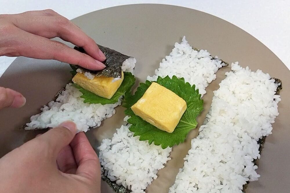 1. ツナとマヨネーズと醤油を合わせ、ツナマヨを作っておく。かつお節と醤油を合わせおかかを作っておく。卵、白だし、砂糖を合わせ卵焼きを作っておく。ウインナーとカニカマと黒ゴマでウインナー星人運動会バージョンを作っておく。(YouTube動画参照)